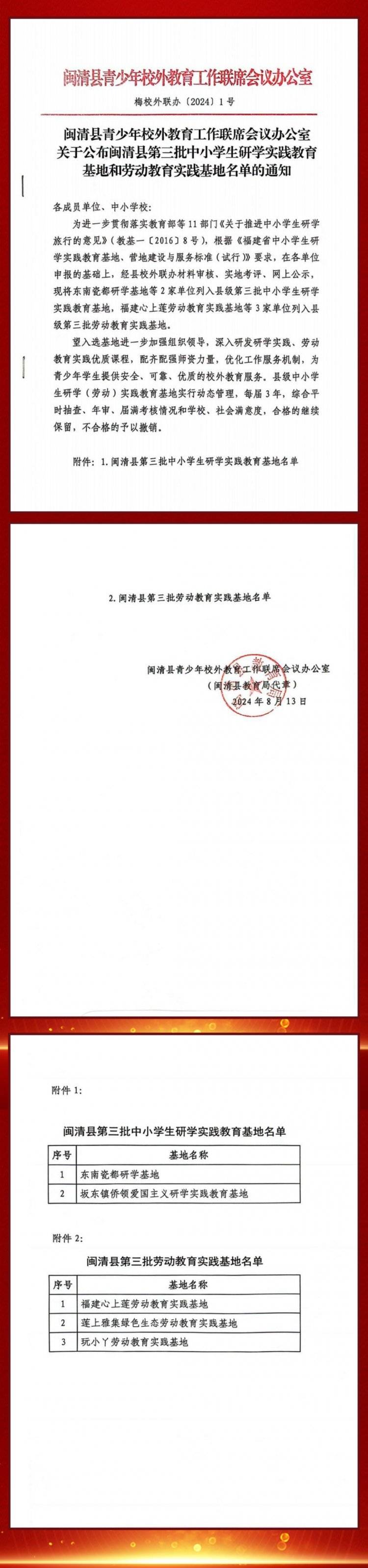 喜报!东南瓷都研学基地等2家单位获评闽清县第三批中小学研学实践教育基地!